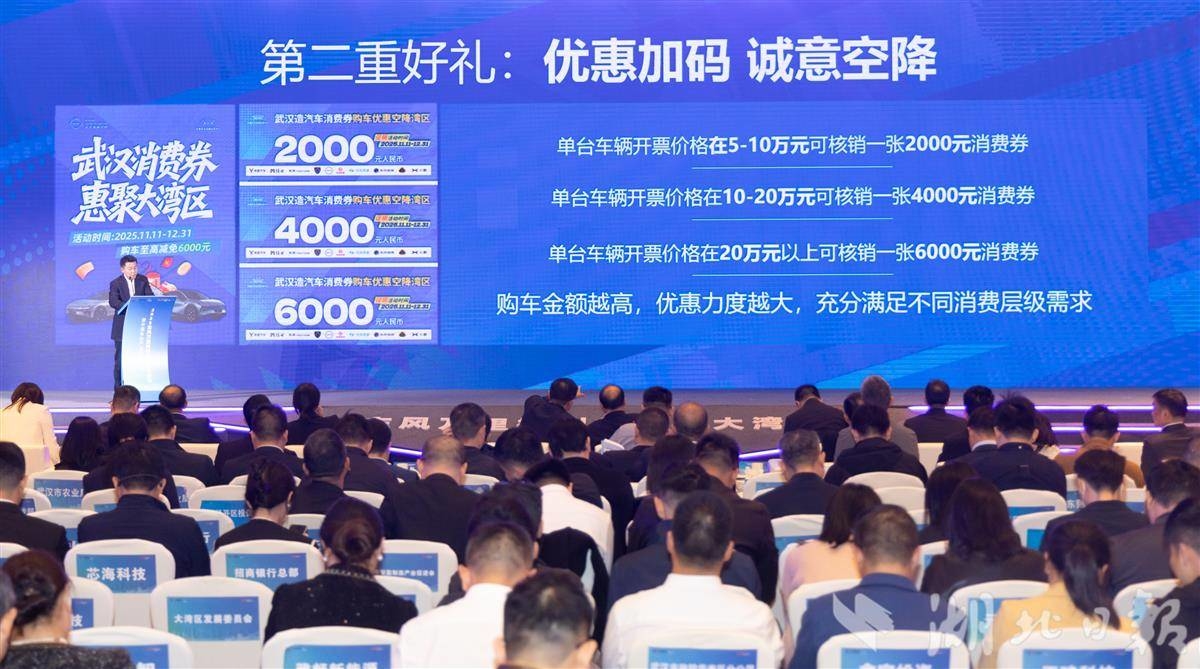 中國(guó)車谷品牌運(yùn)營(yíng)中心現(xiàn)場(chǎng)發(fā)放車谷汽車消費(fèi)券,并宣布利好政策:即日起至2025年12月31日,大灣區(qū)消費(fèi)者購(gòu)買(mǎi)“武漢造”“車谷造”相關(guān)車型,憑車谷汽車消費(fèi)券最高減免6000元。