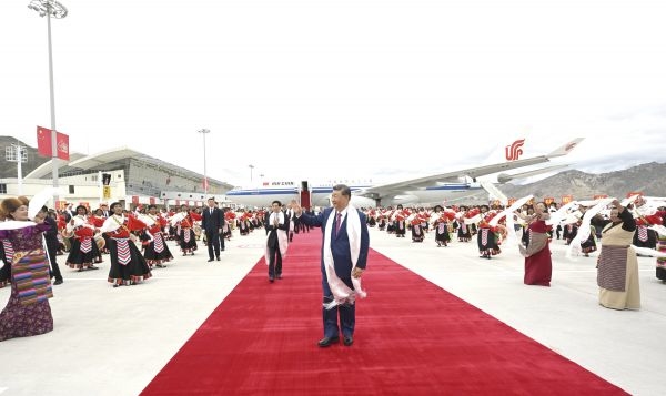 △8月20日中午,中共中央總書記、國家主席、中央軍委主席習近平率中央代表團乘專機抵達拉薩,出席西藏自治區成立60周年慶祝活動。
