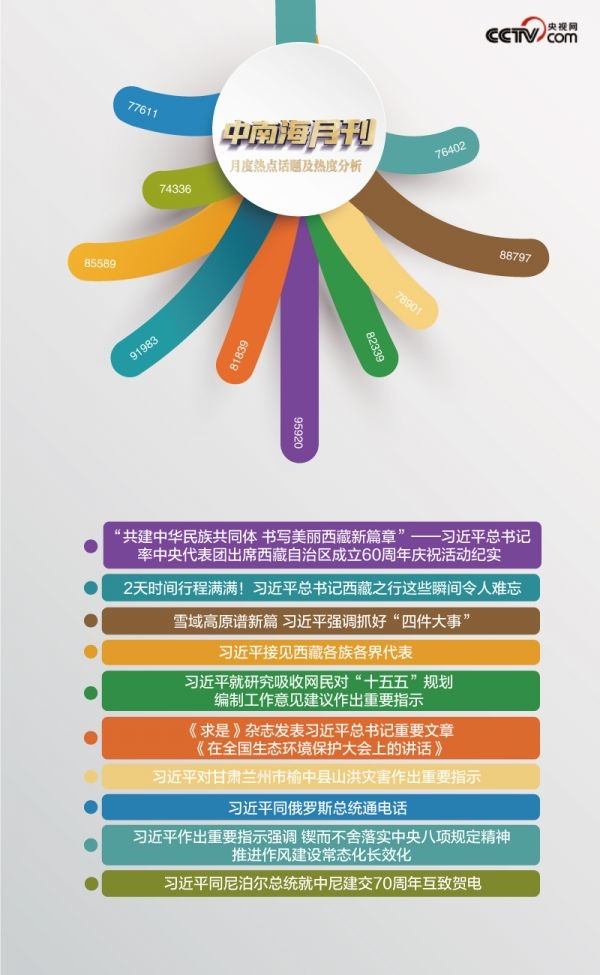 觀察央視網“I學習”數據庫生成的8月關聯圖譜,從防汛救災保安全,到問計于民謀發展,再到治邊富民促團結……總書記的一系列指示、要求,無不蘊含著人民至上的執政初心。