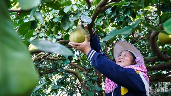 △金柚成為鄉(xiāng)親們的致富果。(總臺(tái)記者李晉拍攝)